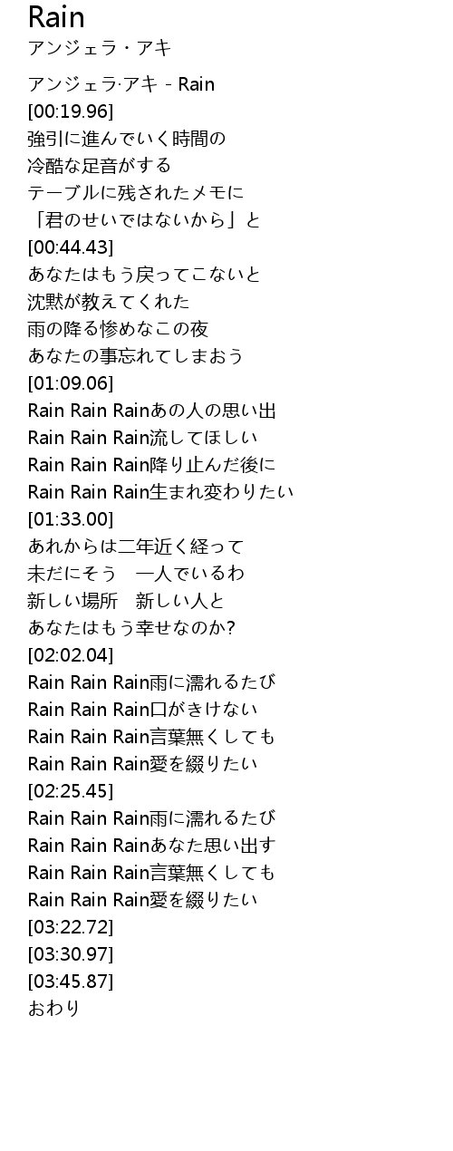 | [02:55.52] | Rain Rain Rainあなた思い出す |