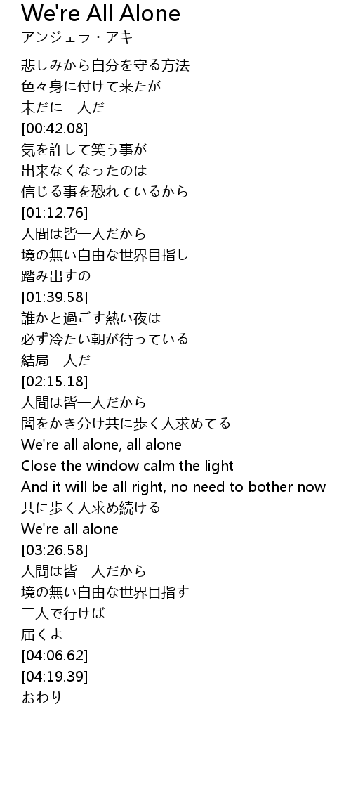| [03:19.76] | We're all alone |