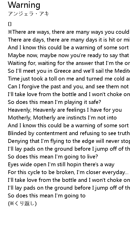 | And I know this could be a warning of some sort to me※ | |