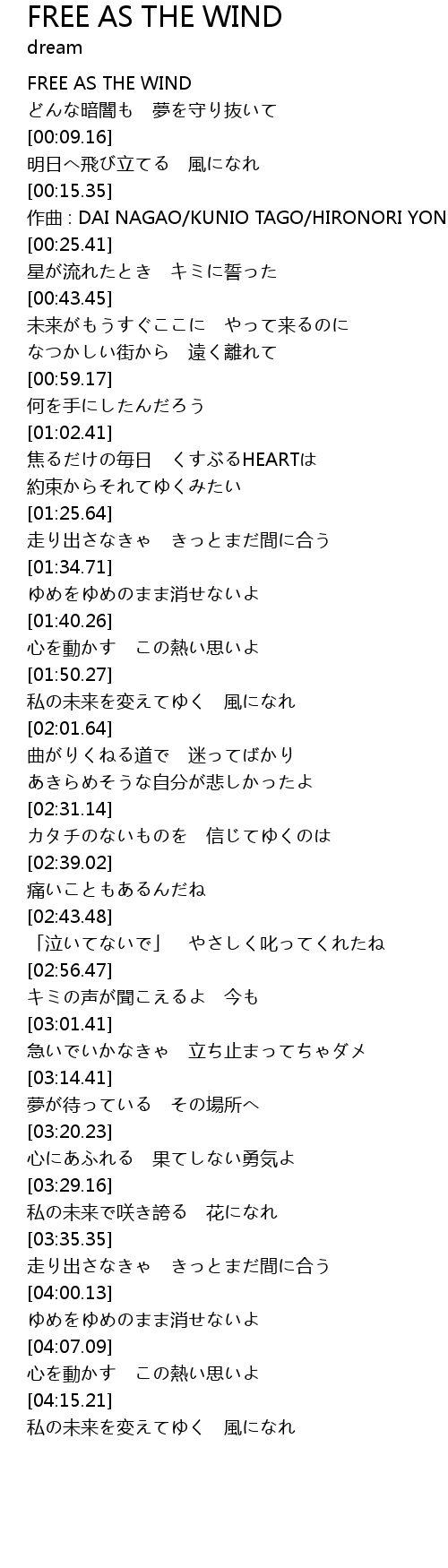 | [04:17.71] | 私の未来を変えてゆく 風になれ |