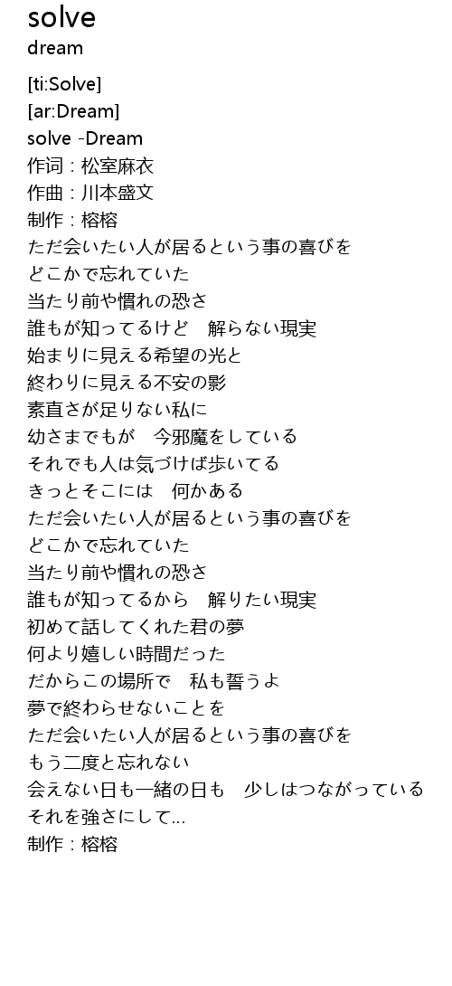 | [02:45.48] | 初めて話してくれた君の夢 |