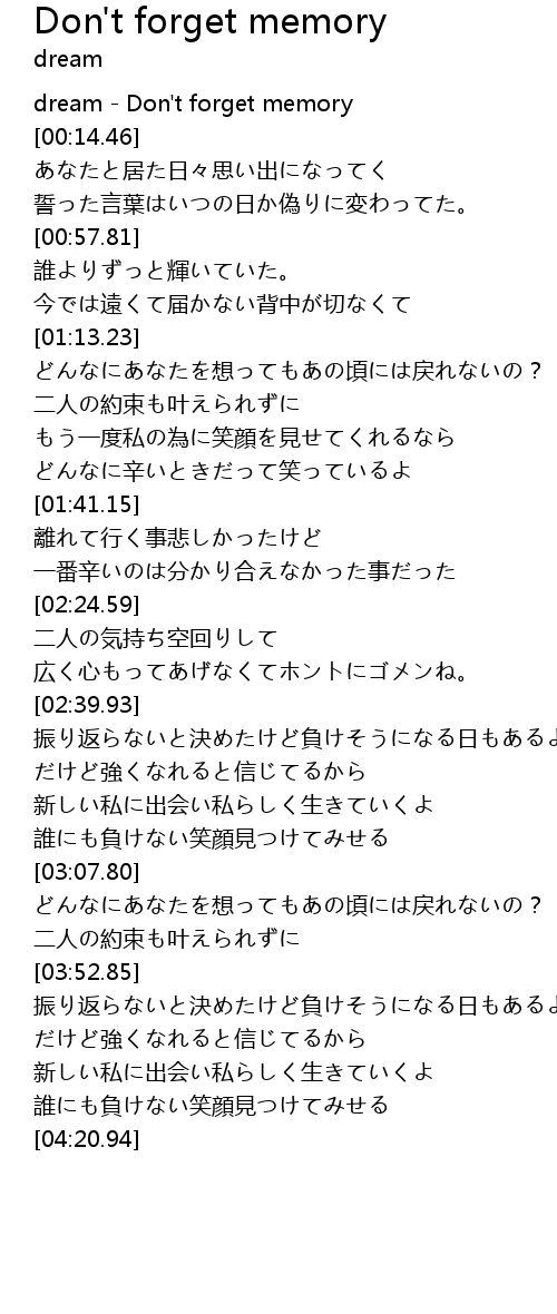 | [03:53.86] | 振り返らないと決めたけど負けそうになる日もあるよ |