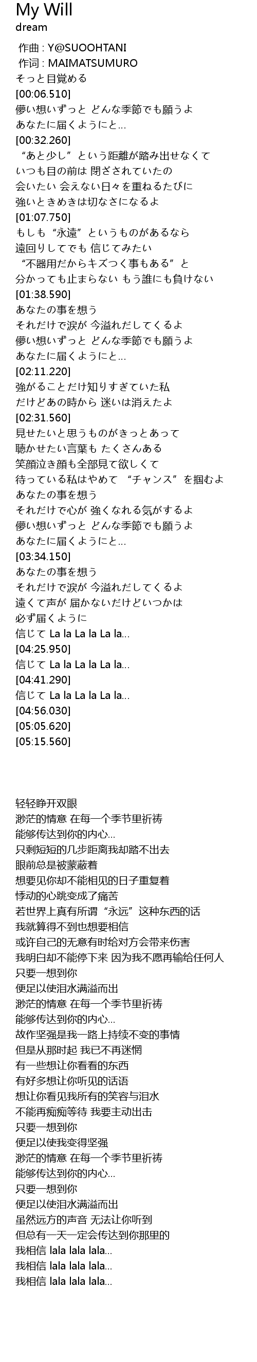 | [04:33.750] | 信じて La la La la La la… |