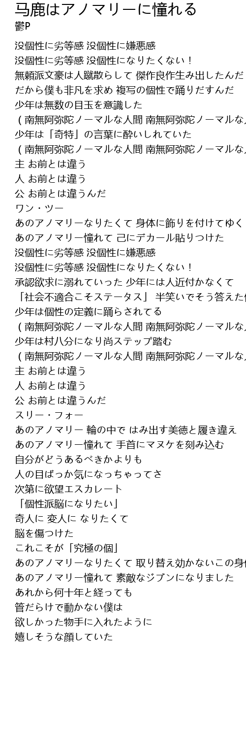 | あのアノマリーなりたくて 取り替え効かないこの身体 | |
