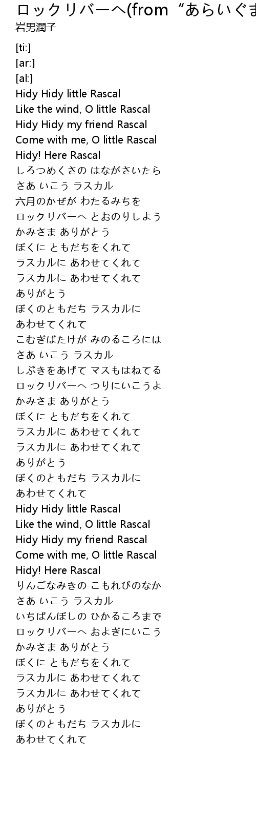 | [02:59.84] | さあ いこう ラスカル |