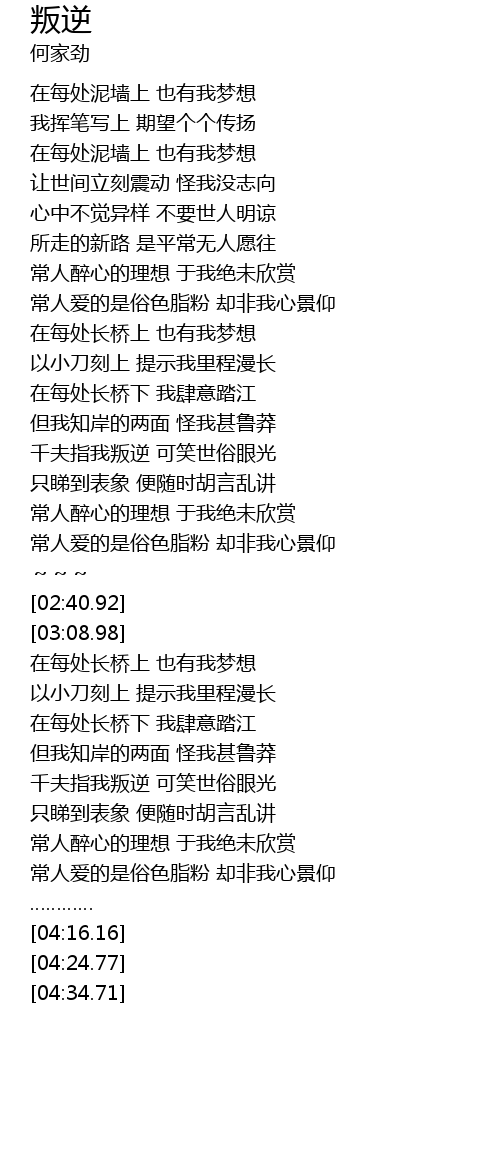 | [03:40.66] | 千夫指我叛逆 可笑世俗眼光 |