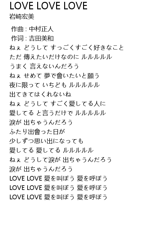 | [02:43.39] | LOVE LOVE 愛を叫ぼう 愛を呼ぼう |