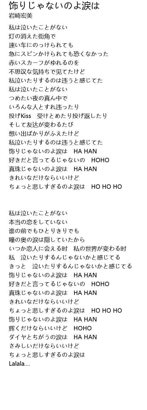 | 饰りじゃないのよ涙は HA HAN | |