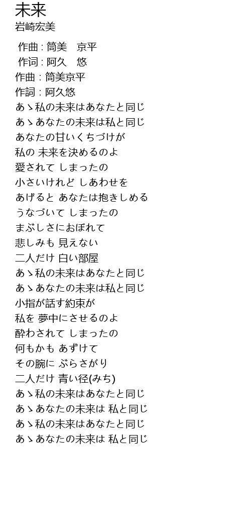 | [02:32.94] | あゝあなたの未来は 私と同じ |