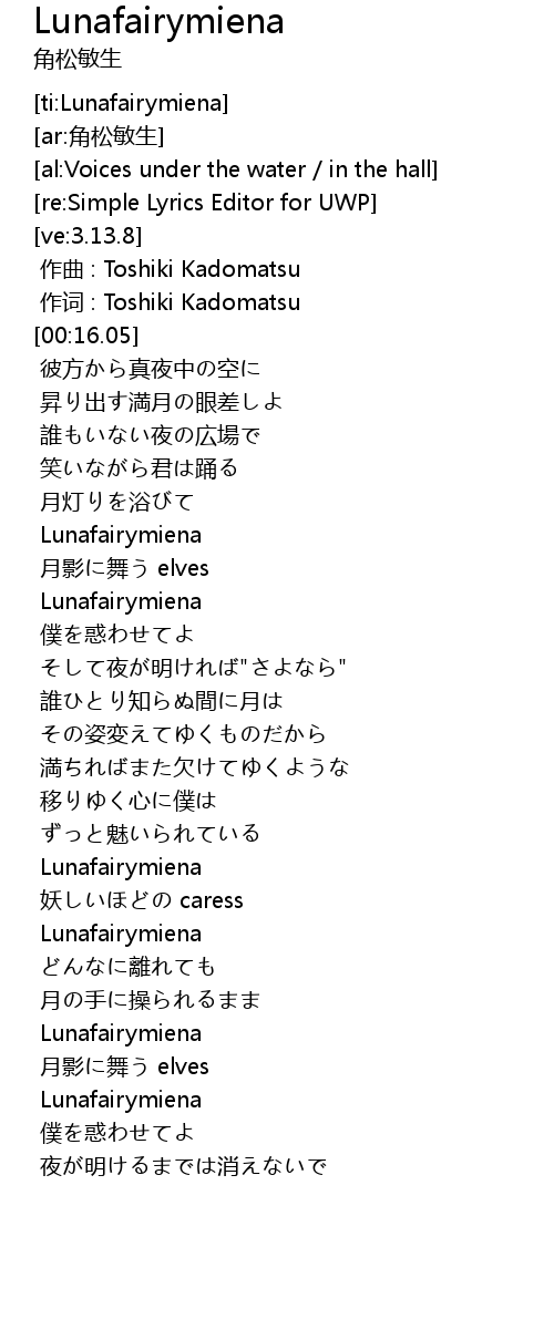 | [01:16.40] | Lunafairymiena |