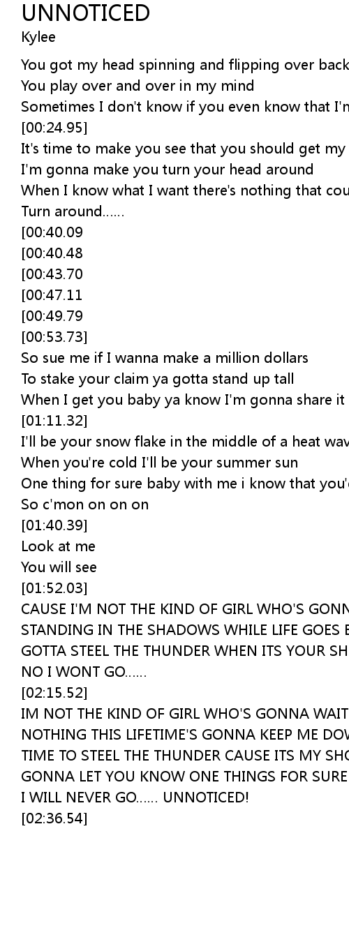 | [01:36.31][00:49.79] | AND I WON'T GO UNNOTICED |