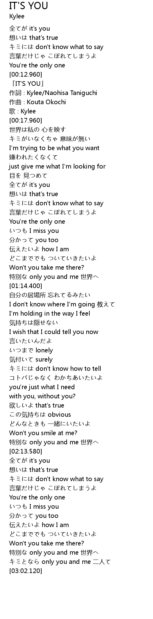 | [00:13.960] | 「IT'S YOU」 |