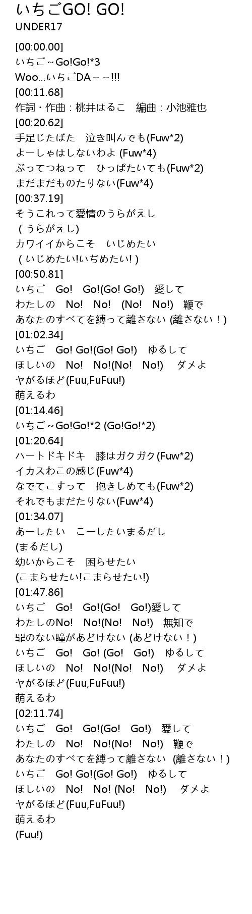 | [02:00.07] | いちご Go! Go! (Go! Go!) ゆるして |