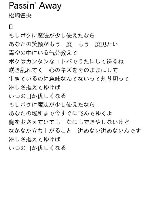 | Song | Passin' Away |