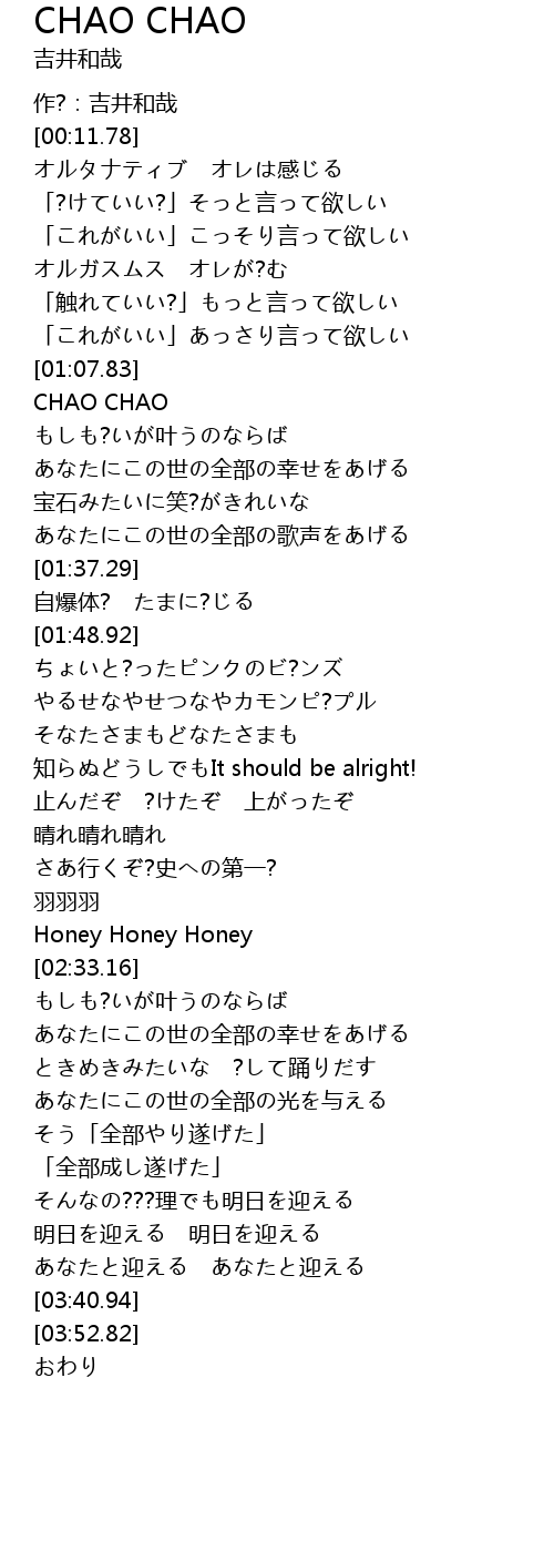| [03:01.09] | ときめきみたいな ?して踊りだす |