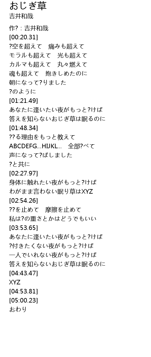 | [01:36.21] | 答えを知らないおじぎ草は眠るのに |