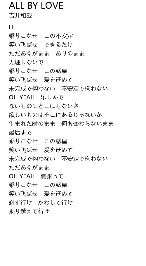 | Song | ALL BY LOVE |