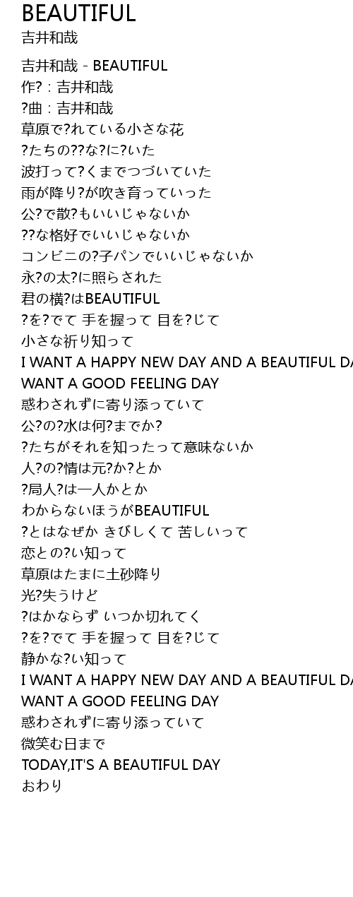 | [00:00.00] | 吉井和哉 - BEAUTIFUL |