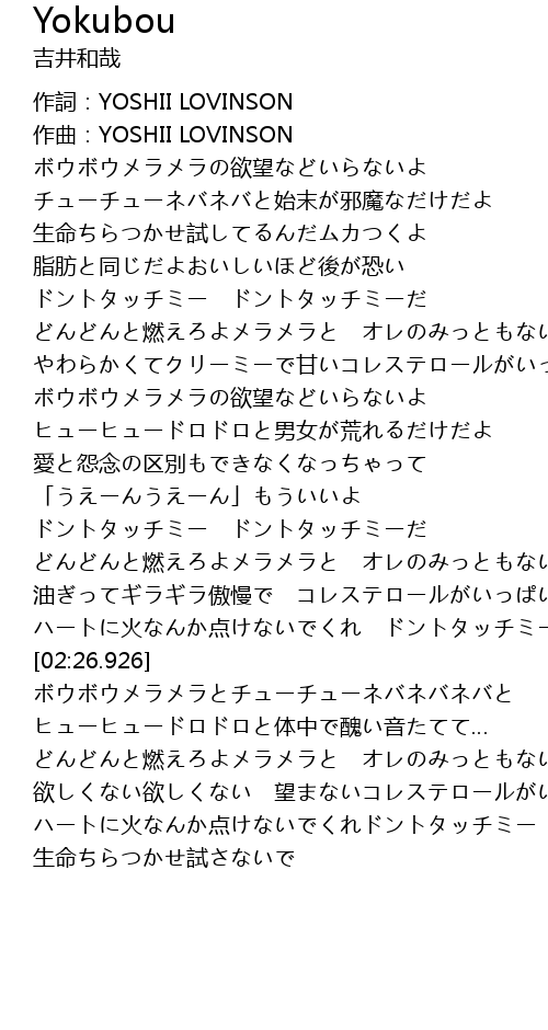 | [00:02.024] | 作詞:YOSHII LOVINSON |