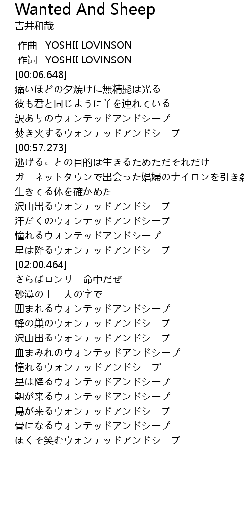 | [03:56.552] | ほくそ笑むウォンテッドアンドシープ |