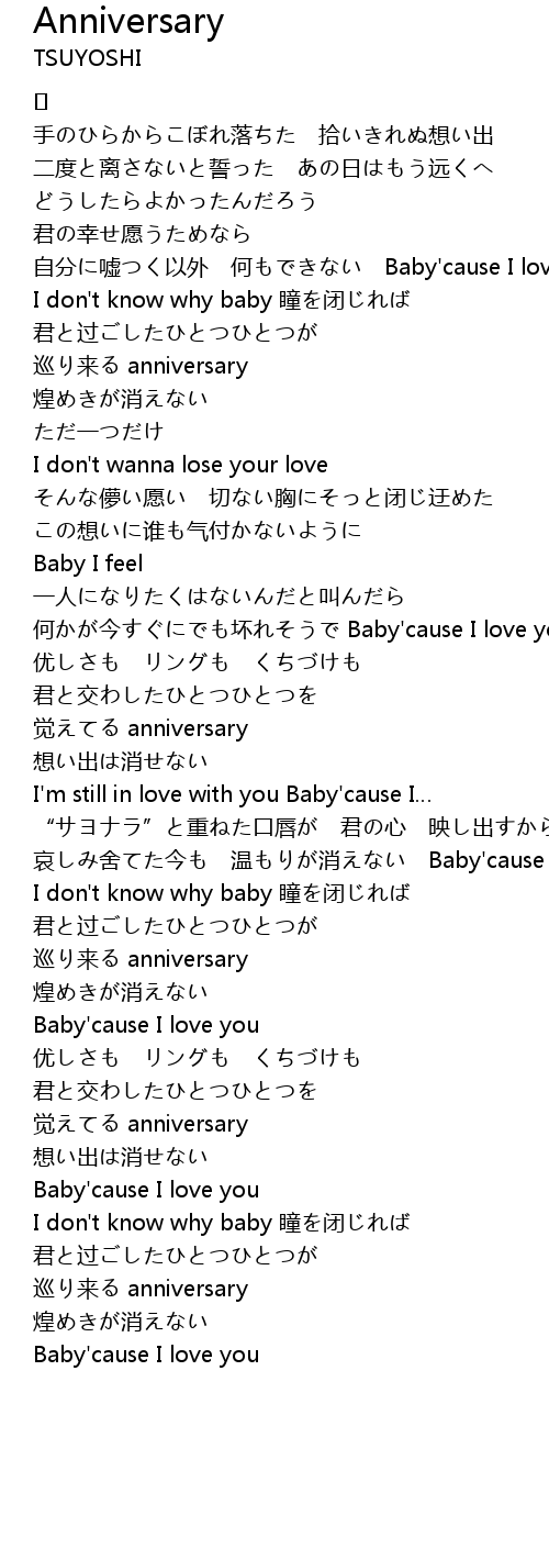 | 哀しみ舍てた今も 温もりが消えない Baby'cause I love you | |