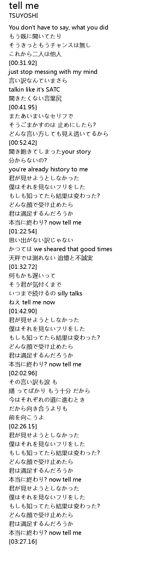 | [03:03.72] | běn dāng zhōng? now tell me |