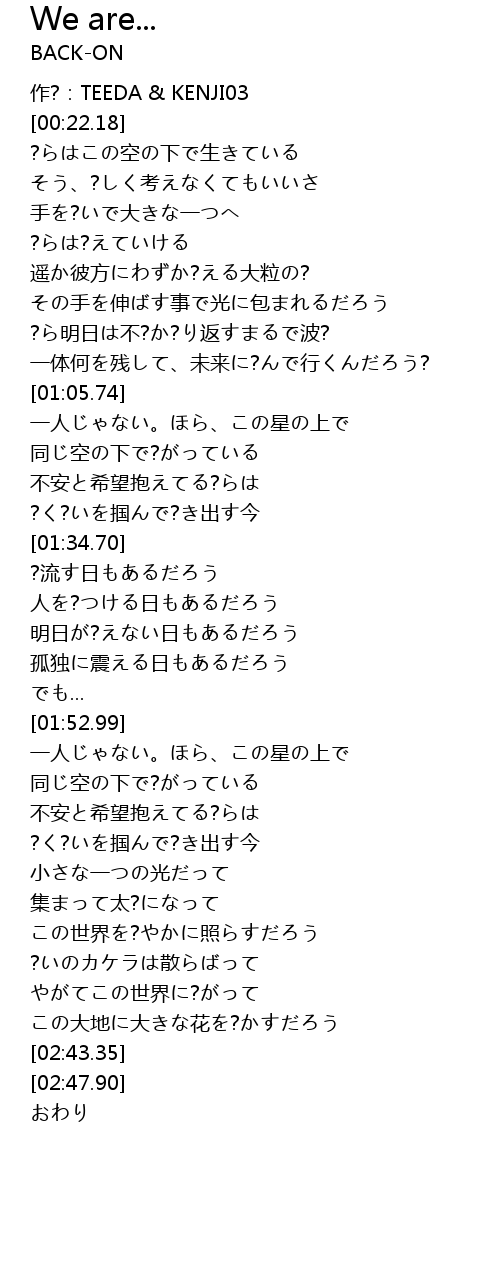 | [01:55.99] | 一人じゃない。ほら、この星の上で |