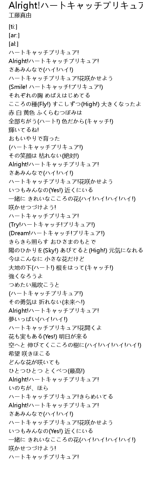 | [00:53.48] | Alright!ハートキャッチプリキュア! |