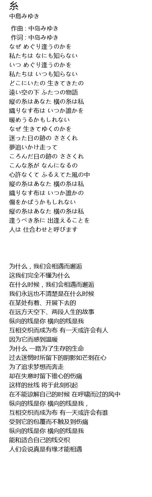 作曲 : 中岛みゆき |