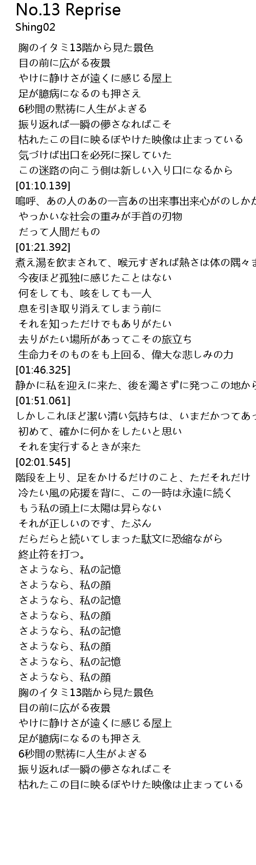 | [02:46.869] | さようなら、私の記憶 |