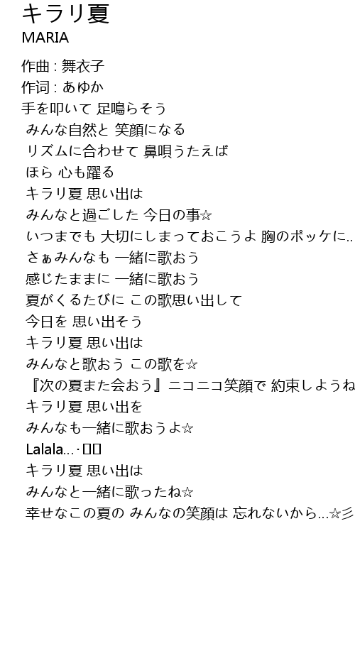 | Song | キラリ夏 |