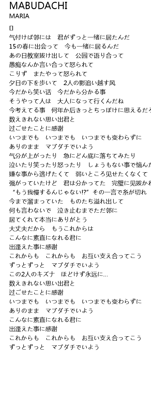 | Song | MABUDACHI |