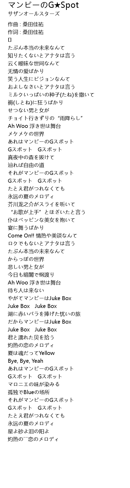 | 作词 : 桑田佳祐 | |