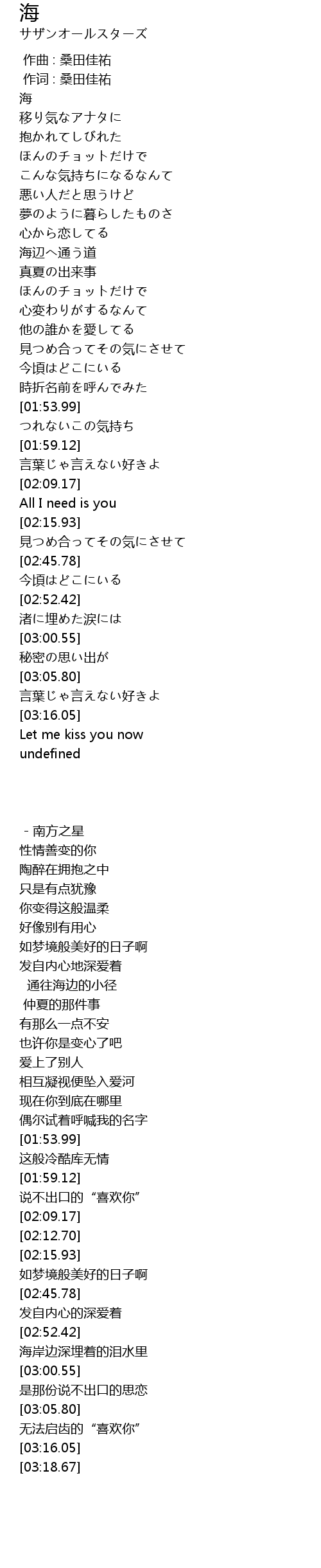 | [00:00.338] | 作词 : 桑田佳祐 |