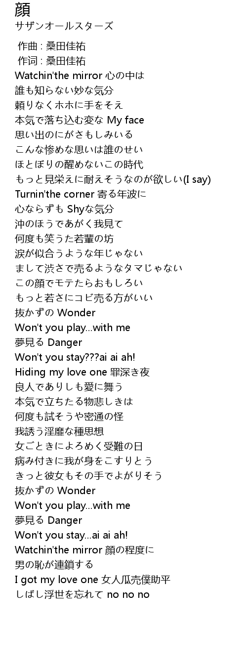 | [00:01.00] | 作词 : 桑田佳祐 |