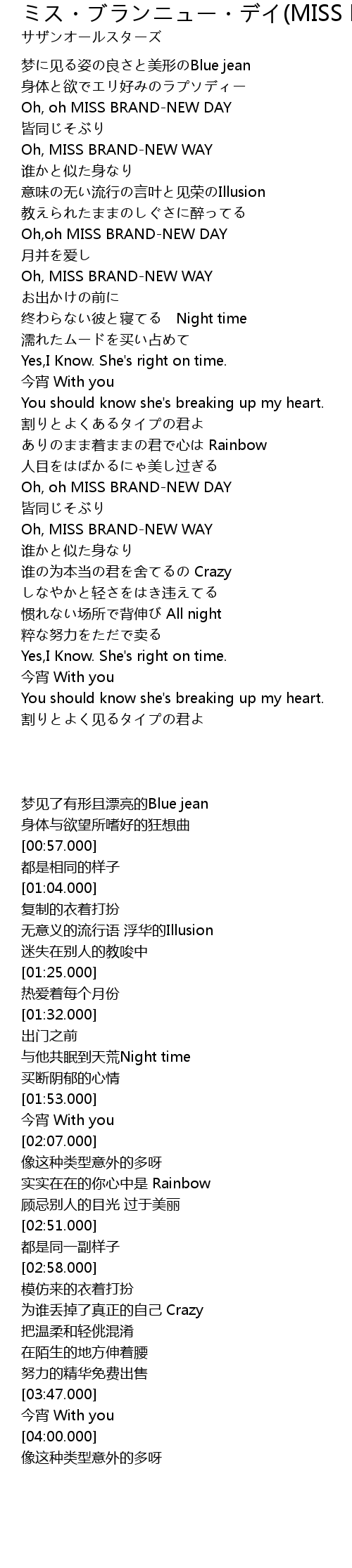 | [02:51.000] | Oh, oh MISS BRANDNEW DAY |