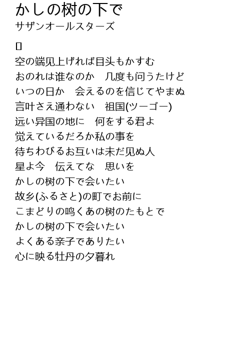 | Song | かしの树の下で |