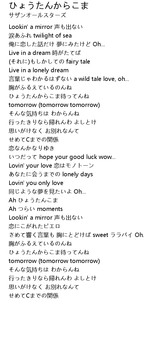 | [02:58.610] | Lookin' a mirror 声も出ない |