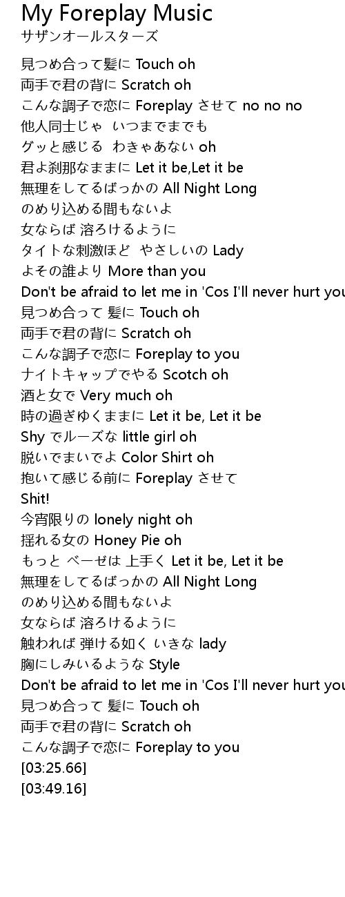 | [02:16.49] | 抱いて感じる前に Foreplay させて |