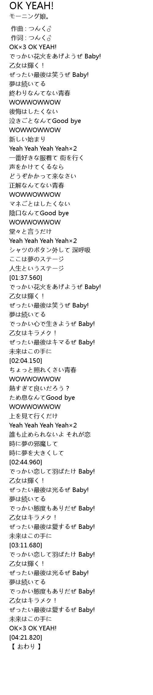 | [04:11.240] | OK×3 OK YEAH! |