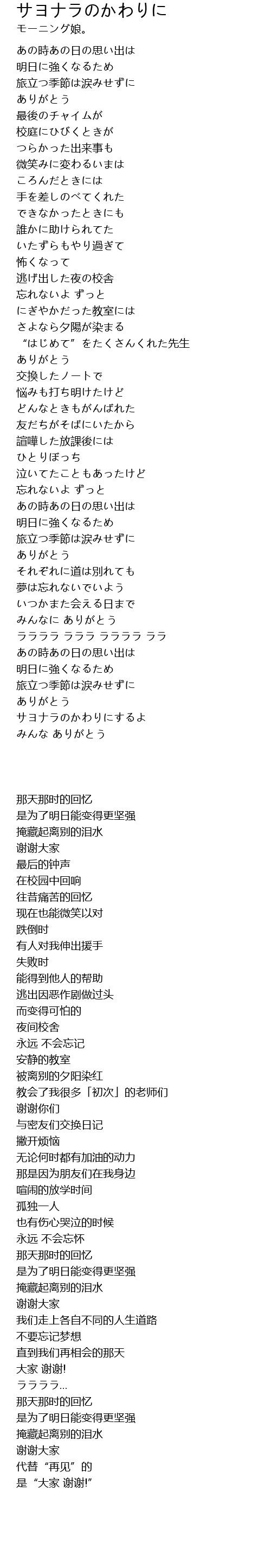 | Song | サヨナラのかわりに |
