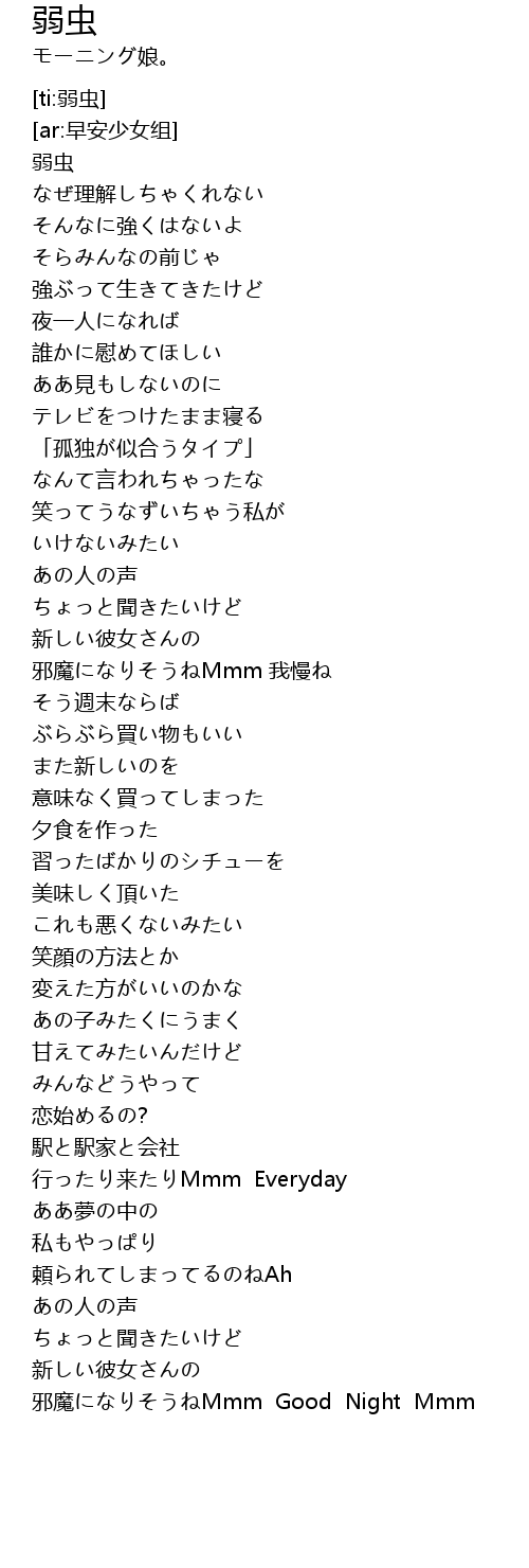 | [04:11.17] | 邪魔になりそうねMmm Good Night Mmm |