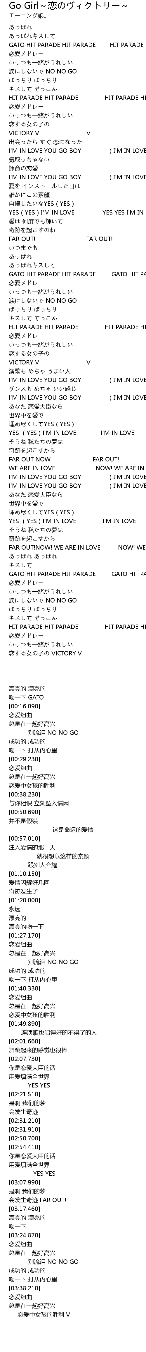 | [02:50.700] | I'M IN LOVE YOU GO BOY (I'M IN LOVE YOU GO BOY) |
