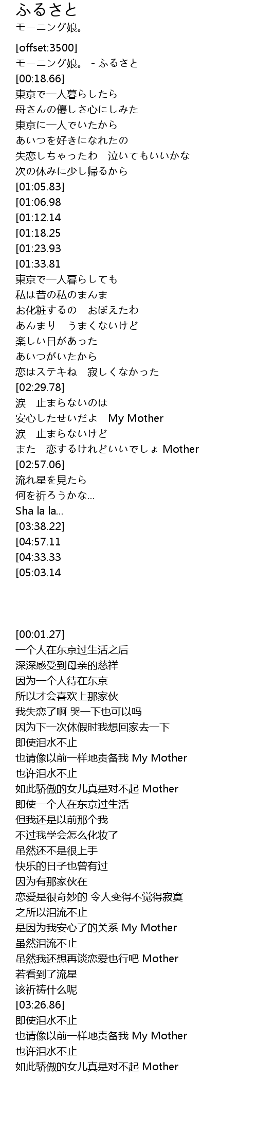 | [00:01.27] | モーニング娘。 - ふるさと |