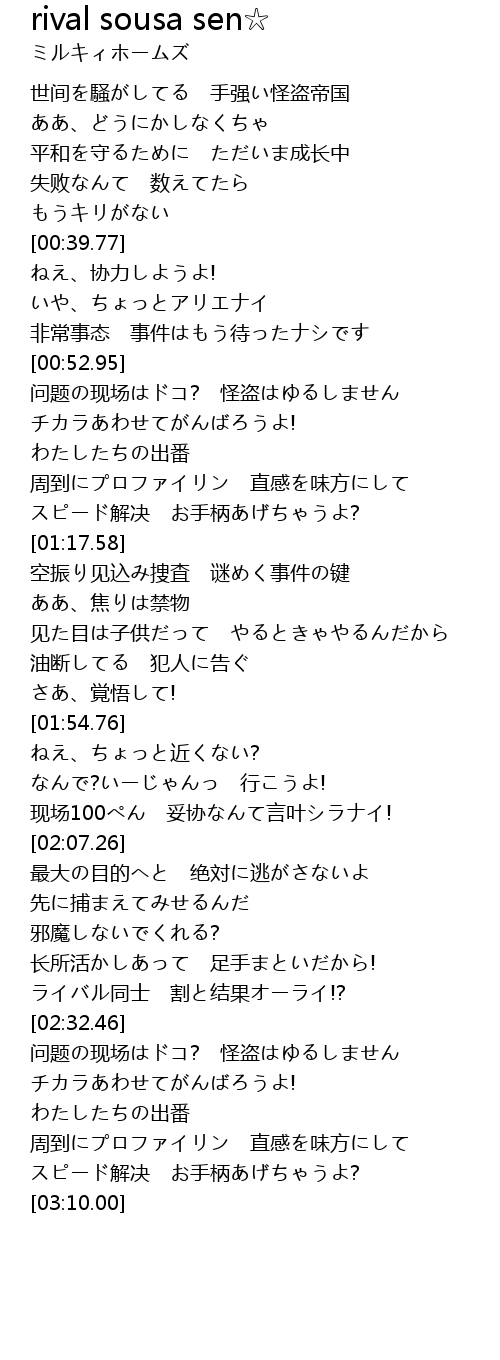 | [02:45.49] | 问题の现场はドコ? 怪盗はゆるしません |