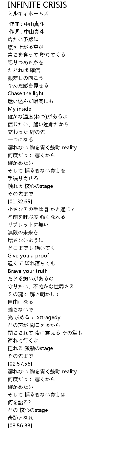 | [03:26.32] | 譲れない 胸を貫く鼓動 reality |