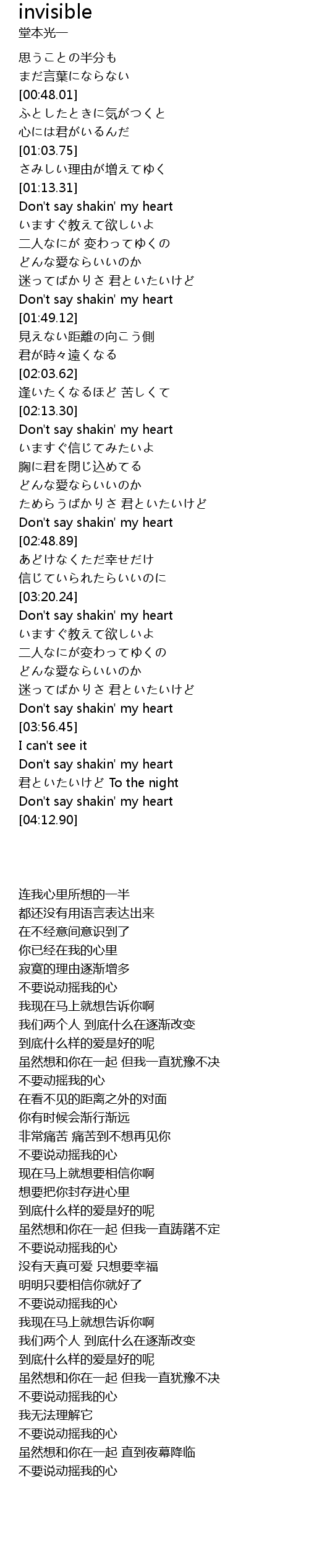 | [04:08.36] | Don' t say shakin' my heart |