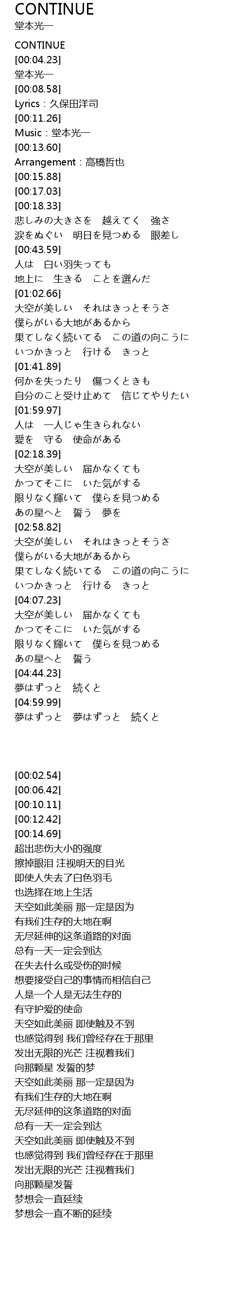 | [05:03.08] | 夢はずっと 夢はずっと 続くと |
