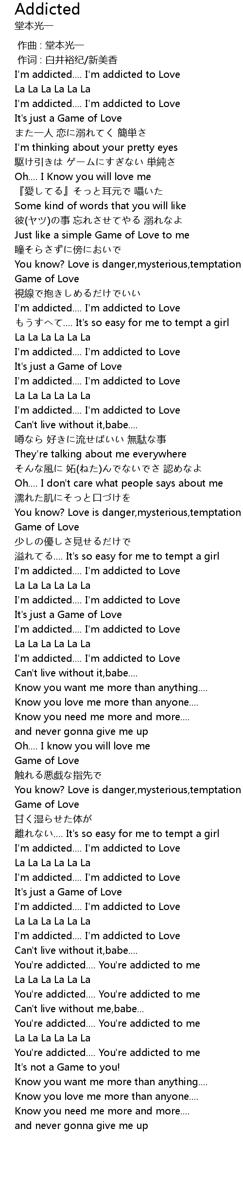| [00:04.440] | I' m addicted.... I' m addicted to Love |