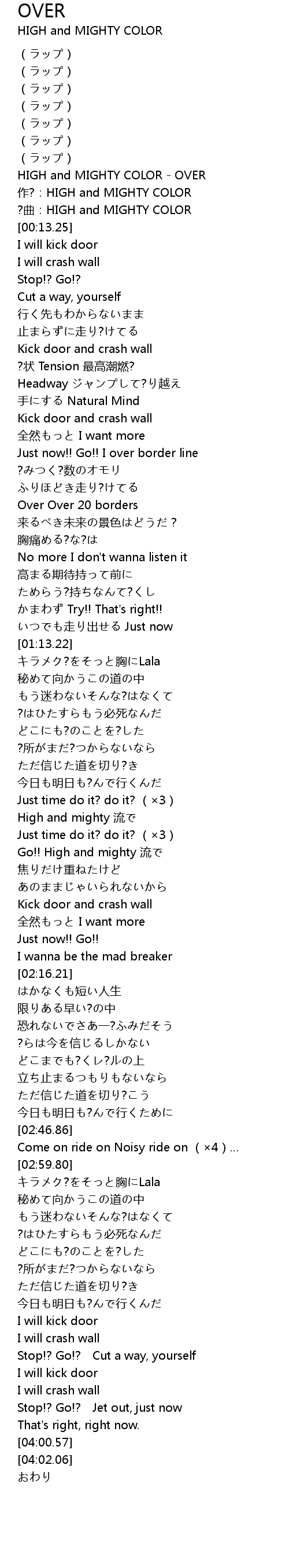 | [00:00.00] | HIGH and MIGHTY COLOR OVER |